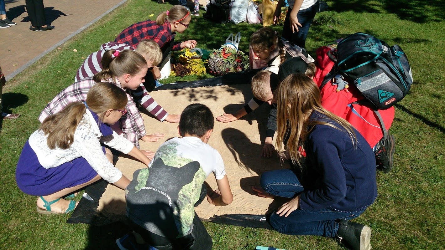 Rugsėjo 15 dieną centrinėje Šiaulių miesto aikštėje prie fontano „Saulės diskai“ vyko pleneras, skirtas 780 Šiaulių miesto gimtadieniui bei Bibliotekų metams paminėti. Plenero šūkis „Seku, seku pasaką“, todėl 50 ugdymo įstaigų mokiniai susirinko šia tema dėlioti spalvingų mozaikų. Dailės mokytojos metodininkės Loretos Narušienės įkvėpti mokiniai kūrė mozaiką „Žaltys“.