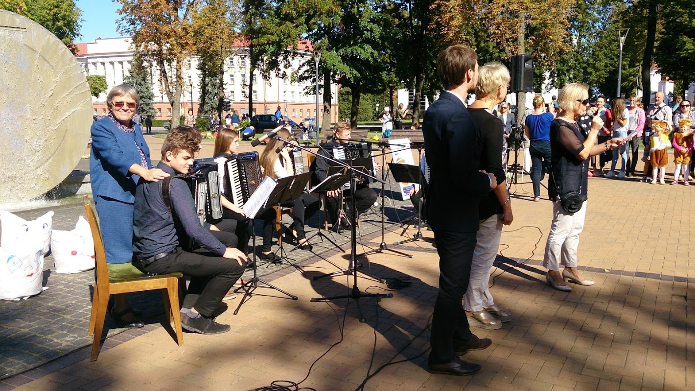 Renginį pradėję mūsų gimnazijos akordeonistai, vadovaujami akordeono mokytojos ekspertės Marytės Markevičienės, darbingai nuteikė jaunuosius kūrėjus. Šiauliečiai džiaugėsi akordeonistų atliekamais kūriniais viso renginio metu.