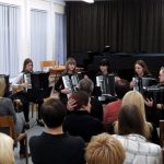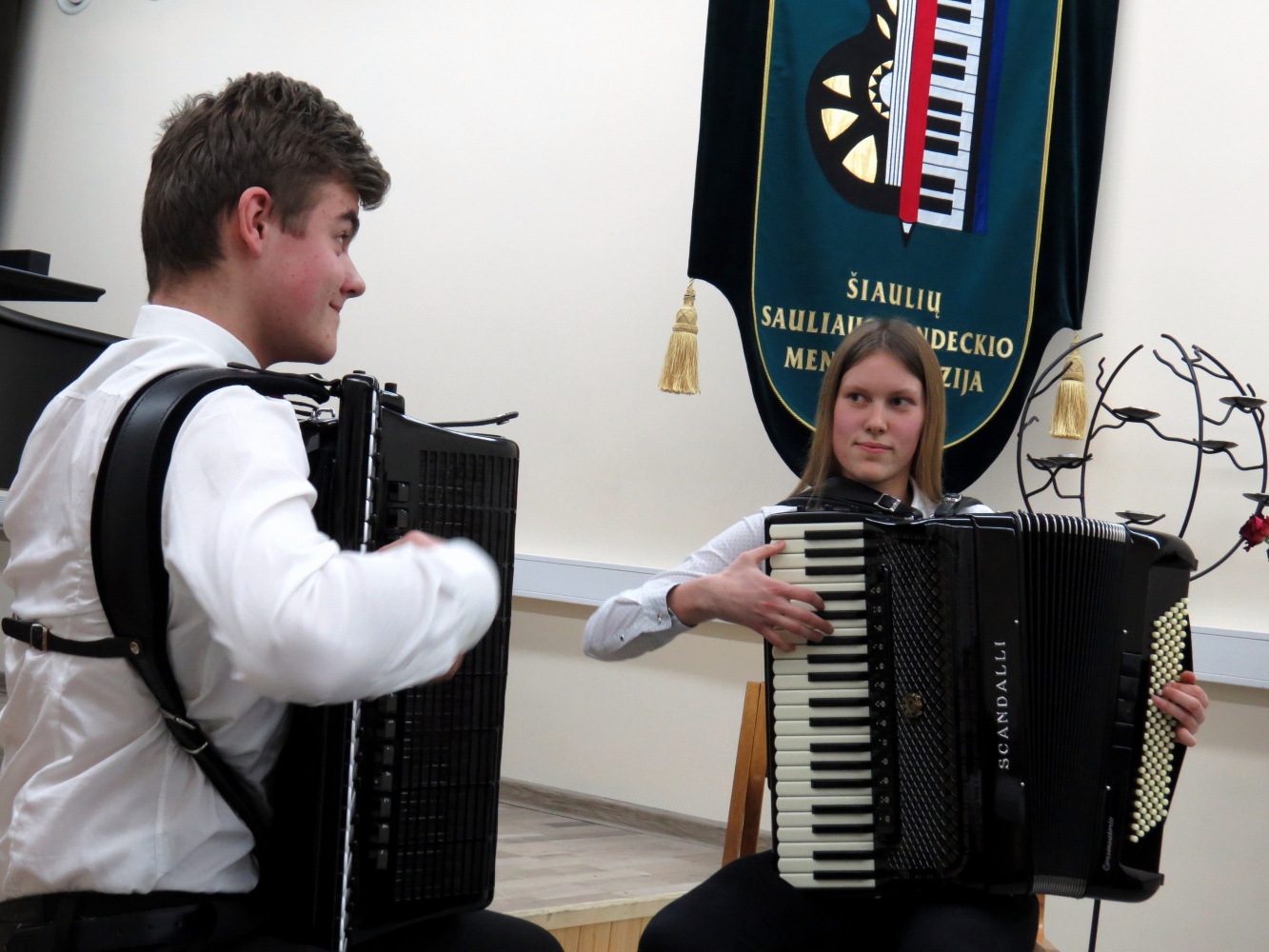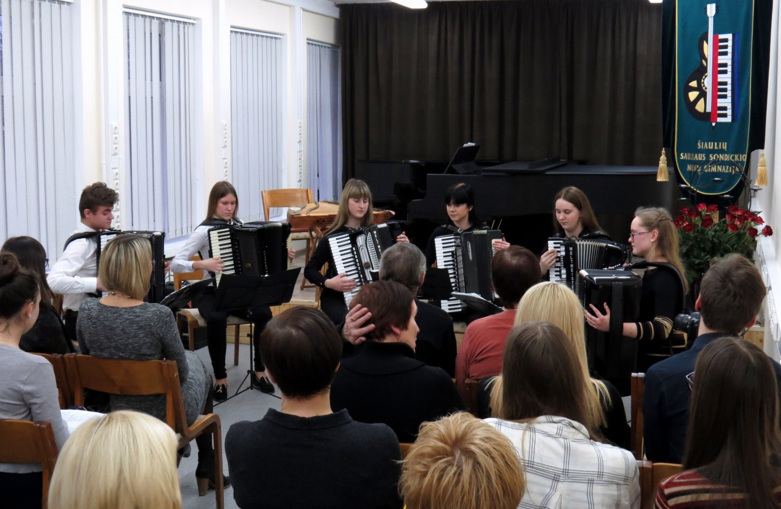Žiūrovų tarpe sutikome ir buvusių gimnazistų, kurie nutarė įvertinti šiemet baigiančiųjų klasių mokinių pasiekimus. Nesitikėjome sulaukti tokio gausaus mūsų veikla besidominčiųjų būrio. Renginio vedantieji – mokytoja Raimonda Sližienė ir Jokūbas Dudnikas puikiai pristatė visus atlikėjus. Koncertą pradėjo akordeonistų ansamblis, po kurio pasirodymo žiūrovai buvo pakviesti aplankyti dvi mokinių paruoštas kūrybinių darbų ekspozicijas.