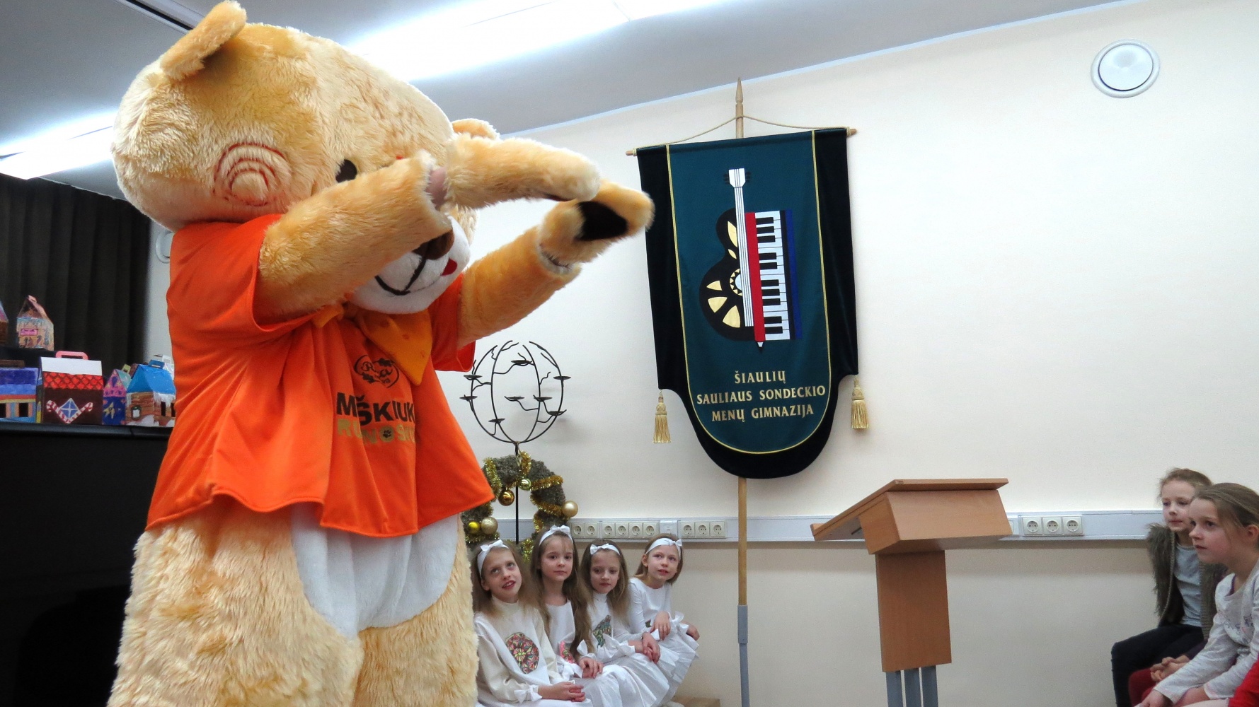 Sausio 5 dieną į gimnaziją atvyko saldainių fabriko „Rūta“ personažas Meškiukas Rudnosiukas susirasti sau tinkamo namelio. O namelius pagal „Rūtos“ pateiktą maketą dekoravo mūsų gimnazijos mokiniai.
