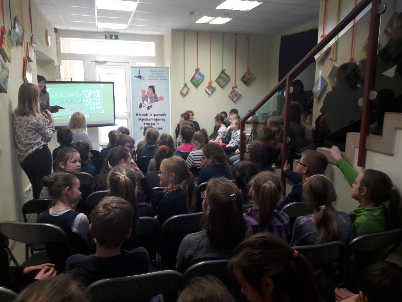 Kovo 21 dieną mūsų gimnazijos trečiokai dalyvavo įžanginiame projekto susitikime-pažintiniame pristatyme „Vertingiausios 1918–1940 metų knygos vaikams“. Renginio vedėja – Šiaulių universiteto Humanitarinio fakulteto profesorė Džiuljeta Maskuliūnienė pristatė pradinukams išleistą knygą-katalogą „Šimtas knygų vaikams ir Lietuvai“ ir kartu su vaikais prisiminė jau skaitytas knygas: Kazio Binkio „Kiškių sukilimas“, Petro Cvirkos „Cukriniai avinėliai“, Vinco Pietario „Lapės gyvenimas ir mirtis“.