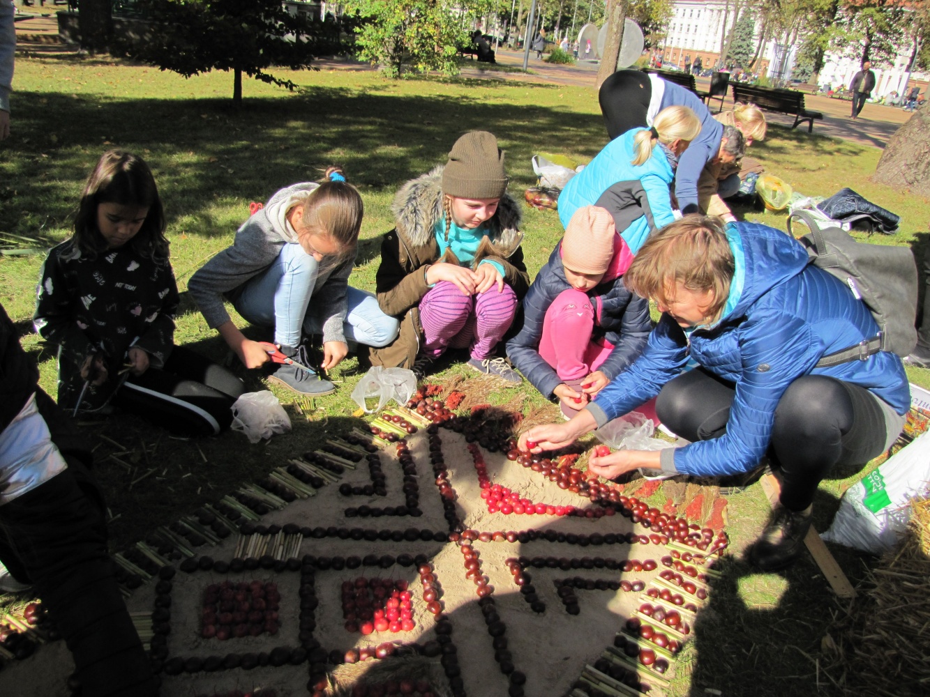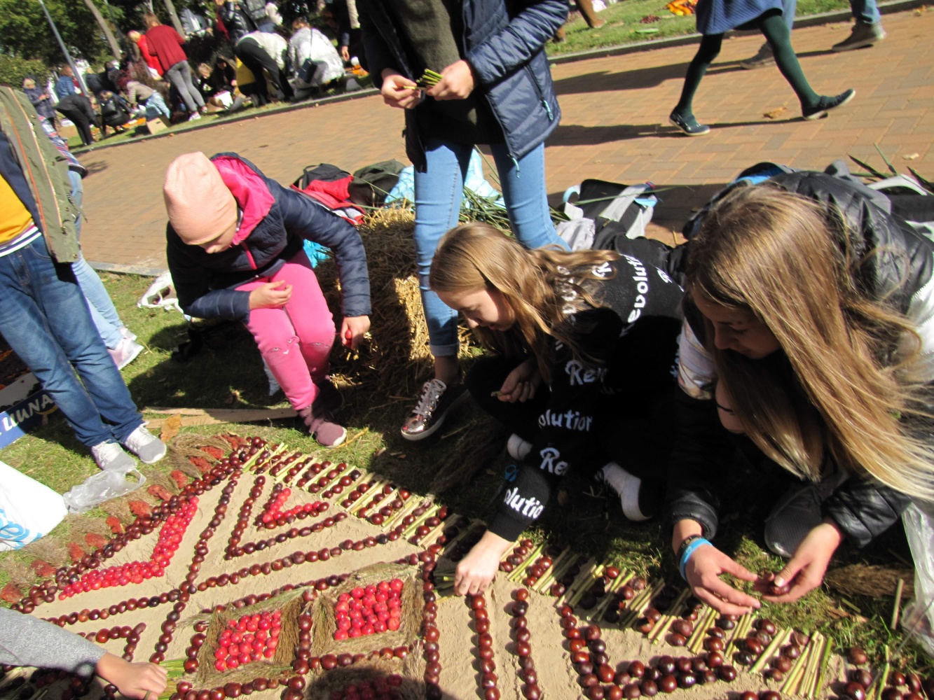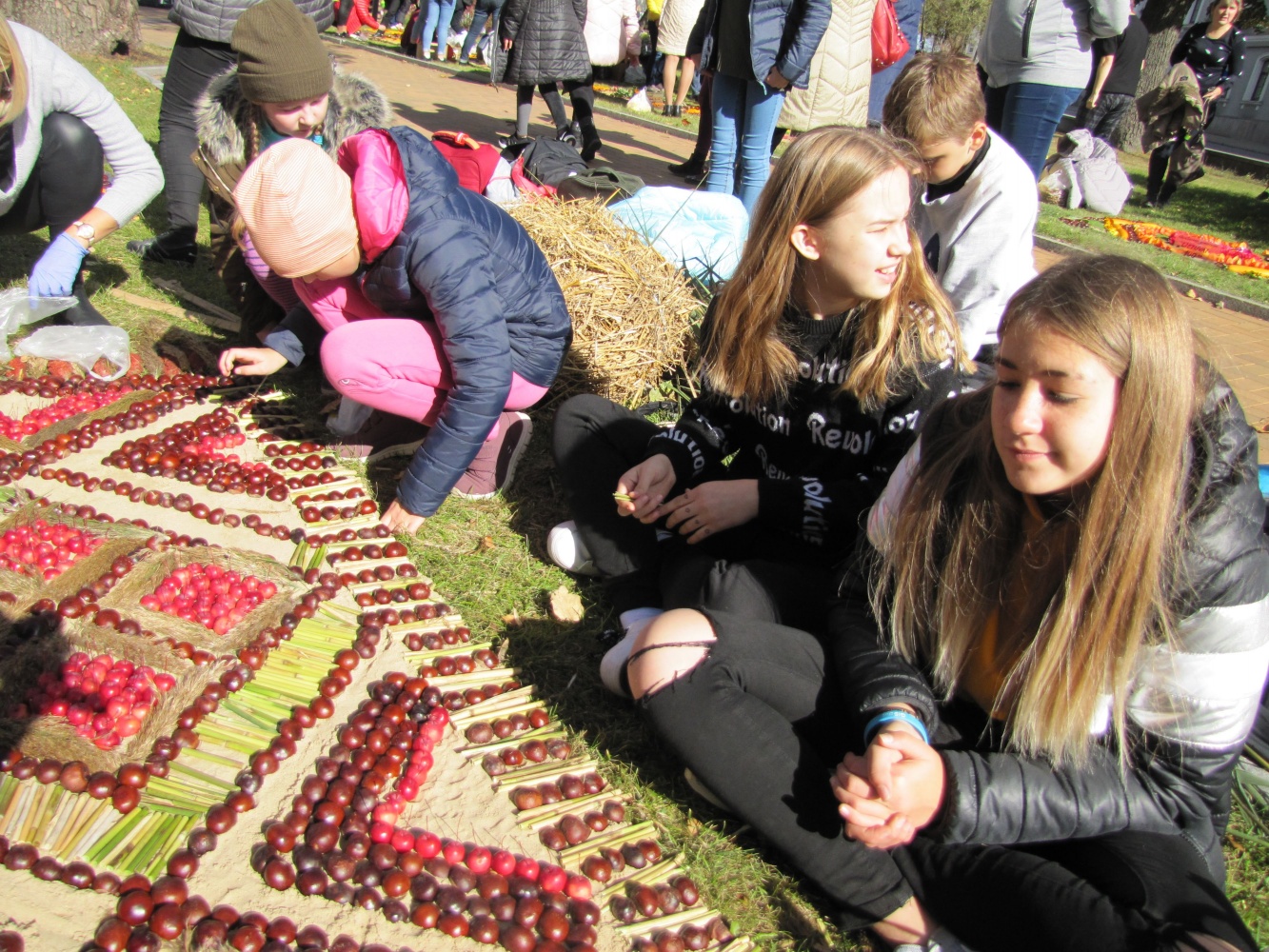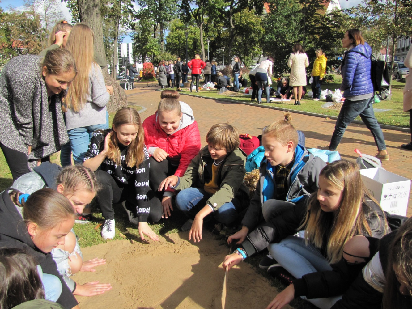 Miesto ugdymo įstaigų atstovai iš gamtinės medžiagos, sodo ir daržo gėrybių sukūrė per 40 mozaikų, vaizduojančių tautinių kostiumų, audinių, juostų raštus. Mūsų mokyklos mokiniai iš kaštonų, rojaus obuoliukų, nendrių sukūrė įspūdingą ornamentą, kurį pavadino „Tu nuauski mamai juostą“. Puikus rudeniškas oras, gera nuotaika, bendras kūrybinis darbas subūrė jaunuosius kūrėjus, įkvėpė juos darniam darbui. Originaliomis juostomis, sukurtomis vaikų ir jų pedagogų rankomis, gali džiaugtis miesto gyventojai ir svečiai.