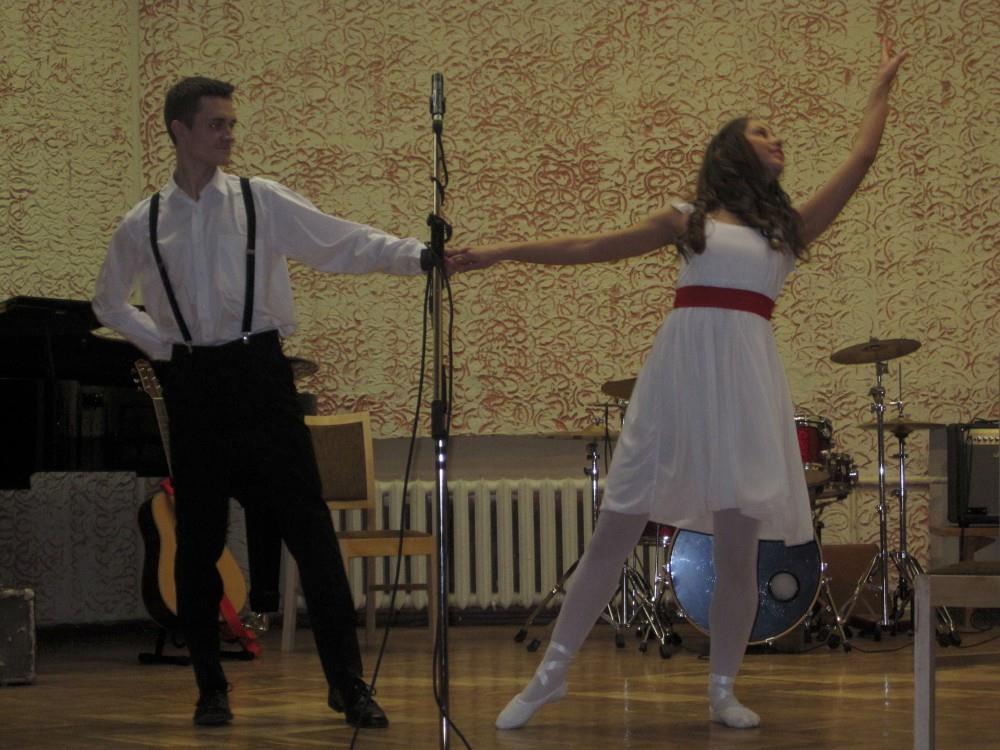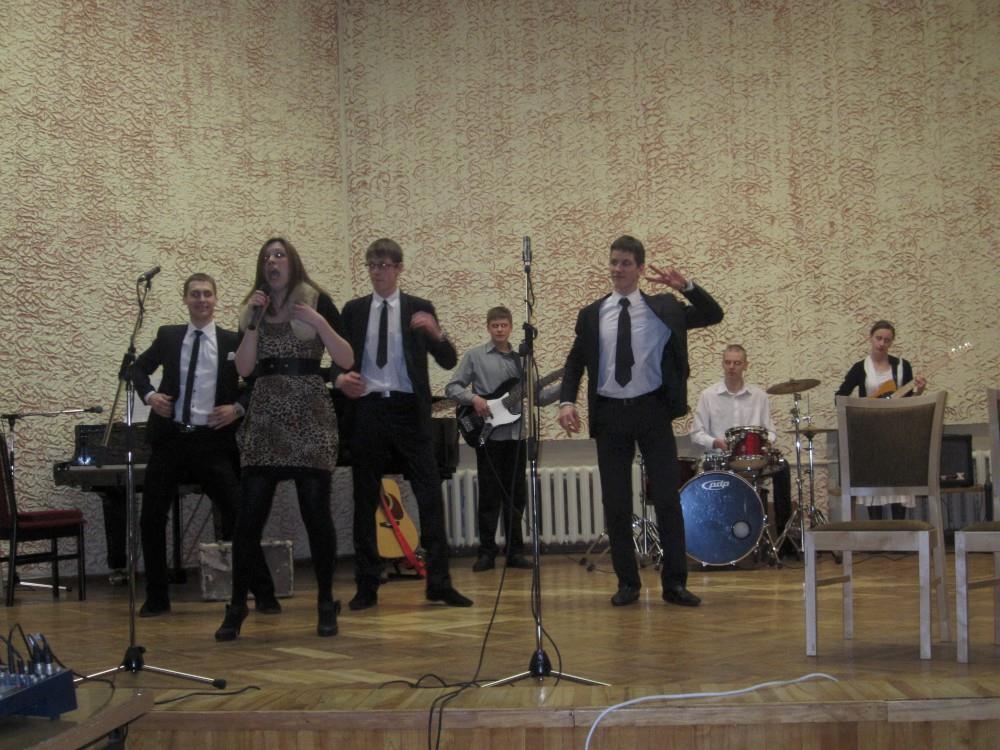 Paskutinį vasario penktadienį mūsų mokyklos dvyliktokai visus pakvietė į šimtadienio šventę. Abiturientai keliavo gyvenimo traukiniu „Amerika – Lietuva“, kuriame nestigo nei šmaikštaus humoro, nei muzikinių kūrinių. Dvyliktokai inscenizavo savo ateities profesijas.