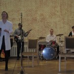 Po pasirodymo abiturientus sveikino vienuoliktokai. Tai graži mūsų mokyklos tradicija.