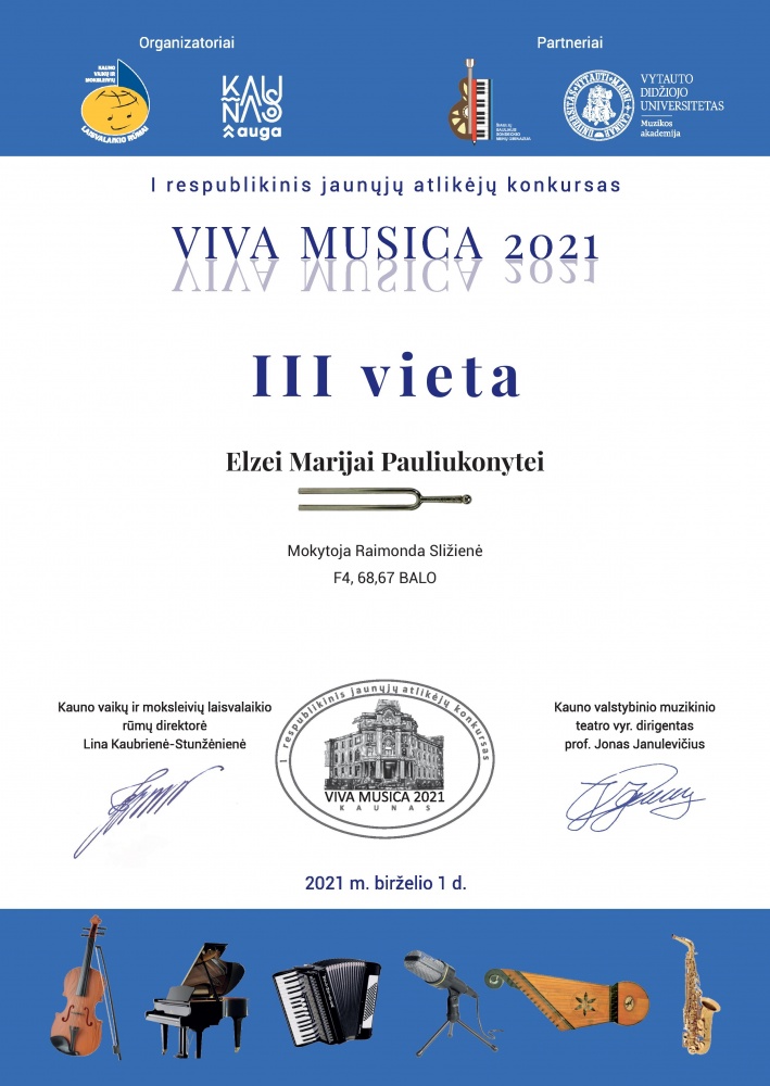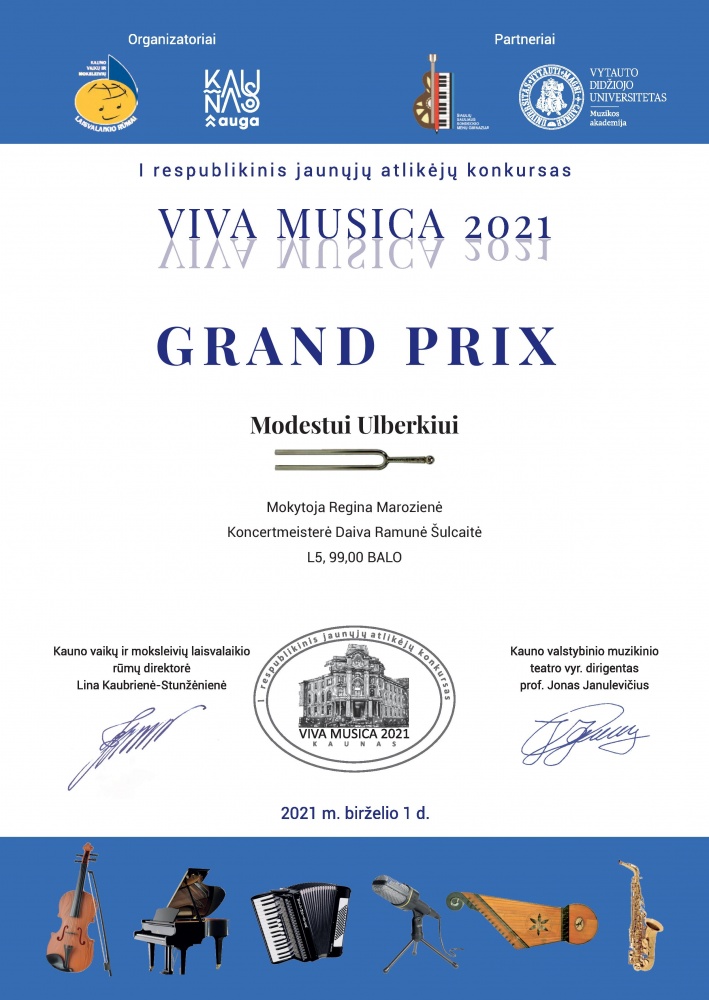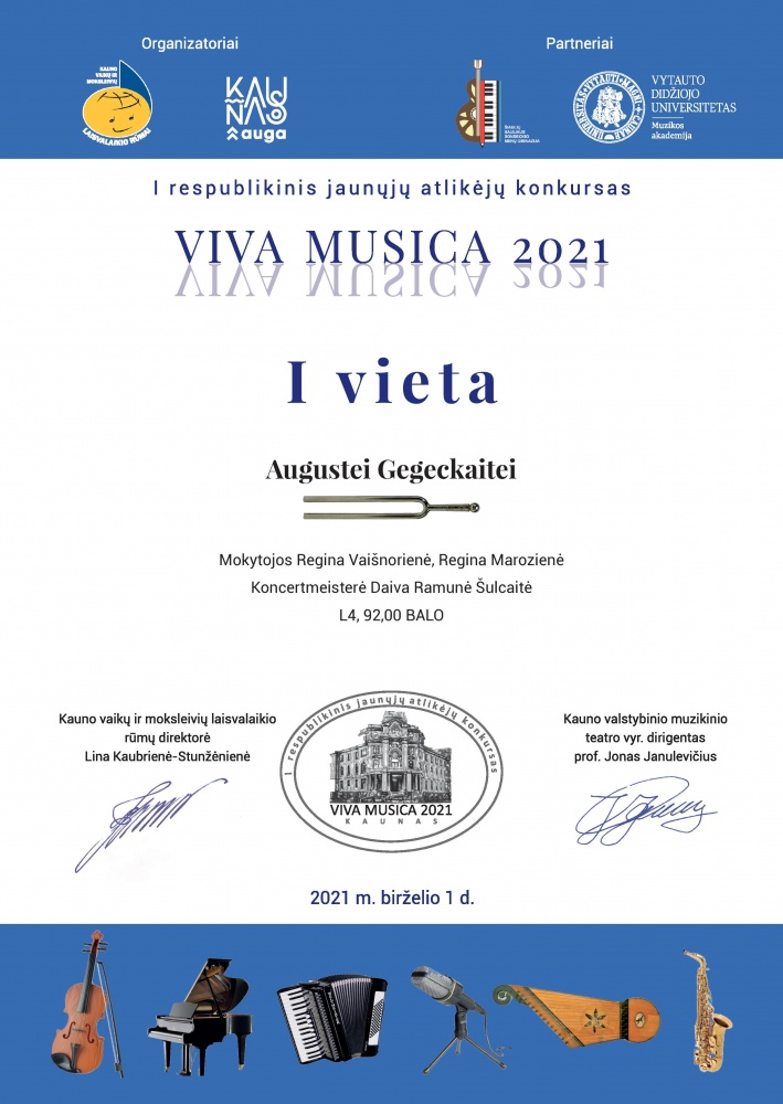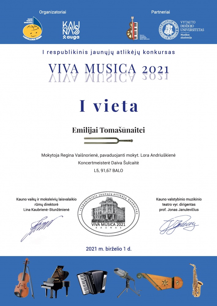 Birželio 2-ąją buvo paskelbti I respublikinio jaunųjų atlikėjų konkurso „VIVA MUSICA 2021“ rezultatai. Virtualus konkursas, kurį organizavo Kauno vaikų ir moksleivių laisvalaikio rūmai, skirtas Tarptautinei vaikų gynimo dienai. Šiaulių Sauliaus Sondeckio menų gimnazija su VDU Muzikos akademija organizuojant šį konkursą dalyvavo kaip partneriai.