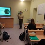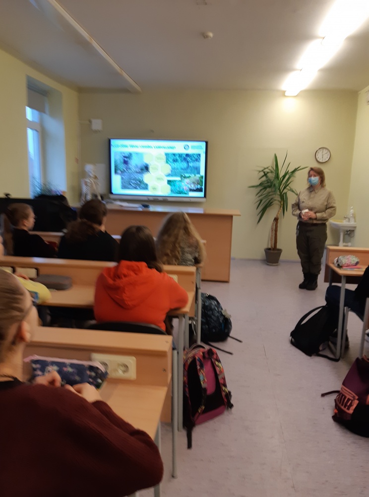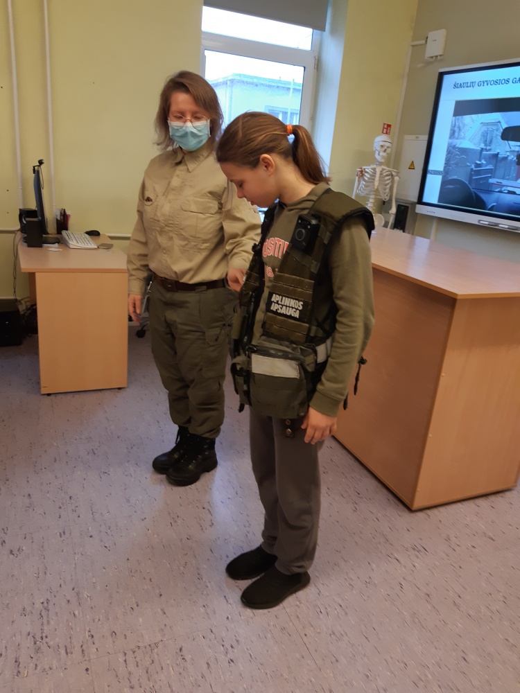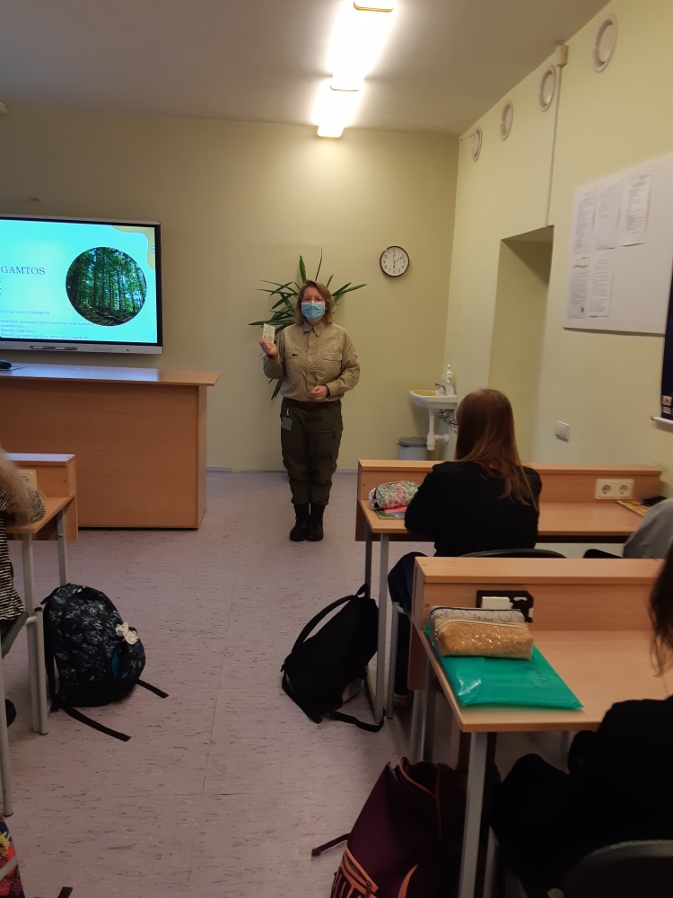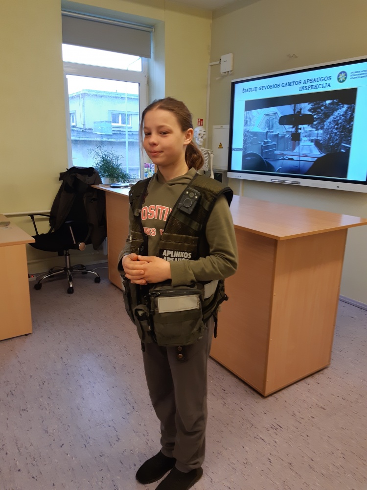 Gimnazijoje sulaukta ir svečių. Šeštokai bendravo su Aplinkos apsaugos departamento prie Aplinkos ministerijos Šiaulių valdybos pareigūne Akvile, kuri papasakojo mokiniams, kokias funkcijas atlieka Aplinkos apsaugos departamento darbuotojai, kad aplinkos apsaugos kontrolei priklauso Aplinkos apsaugos inspekcija, Miškų kontrolės departamentas bei Gyvosios gamtos apsaugos inspekcija. Mokiniai sužinojo, kaip pareigūnai saugoja miškus nuo piktavalių, kokios yra taisyklės šaudymui, žvejybai ir kokios baudos gresia nusižengus įstatymams.