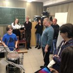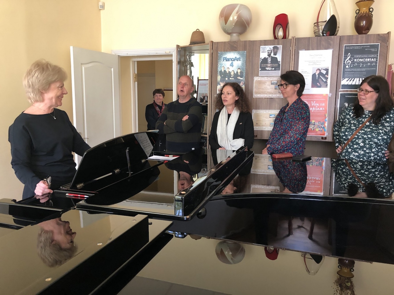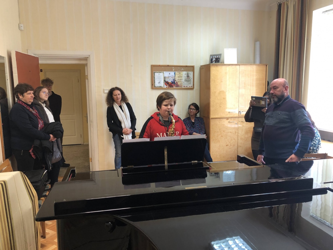 Pirmadienį svečių vizitas gimnazijoje prasidėjo direktorės Reginos Marozienės priėmimu ir pradinių klasių mokinių koncertu. Svečiai buvo maloniai nustebinti gimnazijos 3 klasės choro (mokytoja Rita Daukantaitė, koncertmeisterė Liudmila Filimonenko) atliekamomis dainomis, pradinių klasių Vaikų folkloro ansamblio (mokytoja Lora Andriuškienė) bei šokių būrelio „Ritmo spalvos“ (mokytoja Jolanta Butenienė) pasirodymu pirmąją dieną po atostogų.