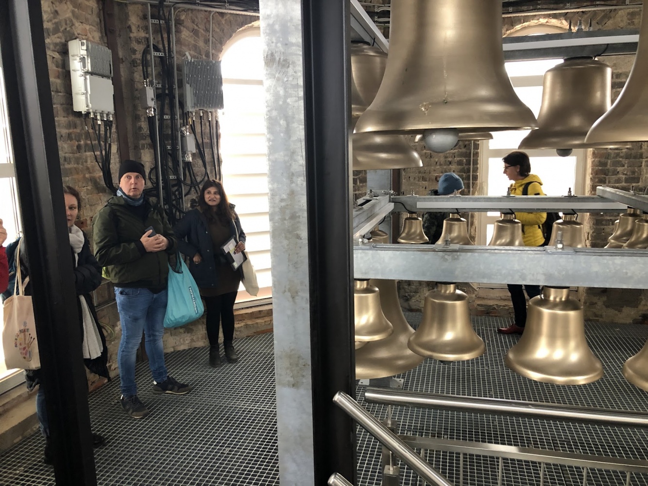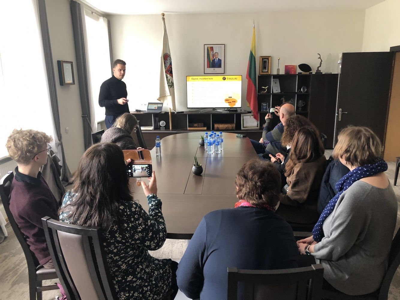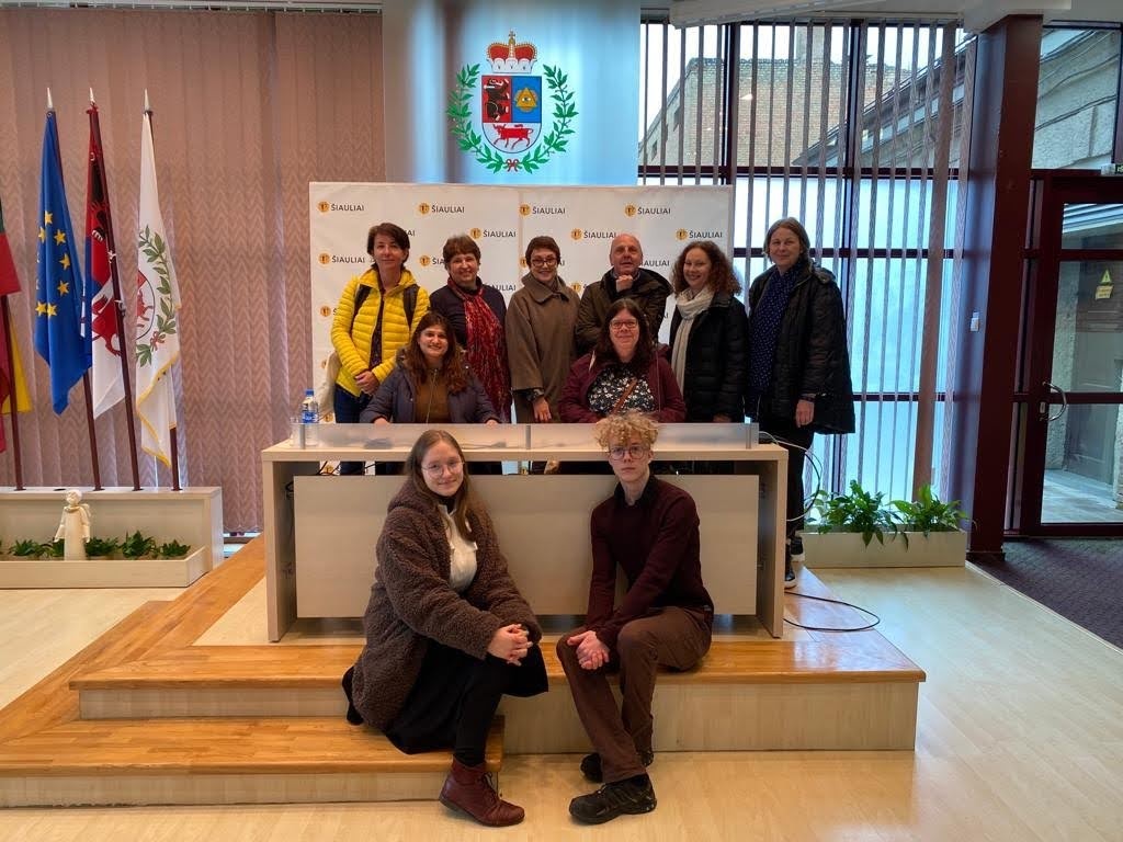Tą pačią dieną lankėmės Šiaulių miesto savivaldybėje, kur mero patarėjas Justinas Švėgžda išsamiai pristatė mūsų miestą. Mokytoja Marija Kaubrienė svečiams ir gimnazijos bendruomenės atstovams surengė apsilankymą Šv. Petro ir Pauliaus katedroje su galimybe užkopti į bokštą ir pamatyti bei išgirsti katedros varpinėje sumontuotus Nyderlandų meistrų pagamintus karilionus. Tai ‒ 36 varpų vienintelis toks instrumentas Šiaurės Lietuvoje. Po to vyko M. Kaubrienės vedama ekskursija po Šiaulių miestą.