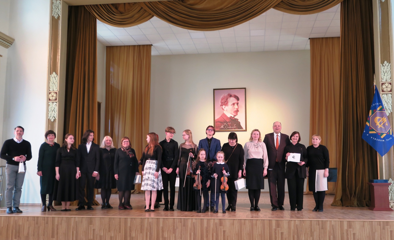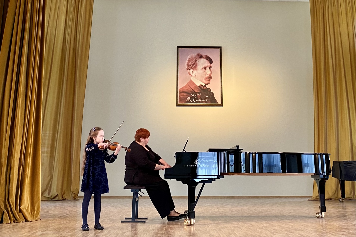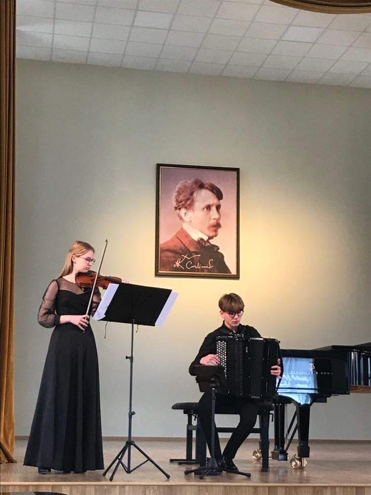 Šioje muzikinėje popietėje čiurlioniukai išgirdo įvairių kūrinių, atliekamų įvairiais instrumentais ir balsu. Koncertą pradėjo pirmą kartą viešėjusios šioje mokykloje ir pirmą kartą jos scenoje pasirodžiusios pirmokės smuikininkės solistės Agnė Marozaitė ir Bernadeta Januškaitė (mokytoja Nijolė Prascevičienė). Gražaus balso galimybes pademonstravo vokalistas Kristupas Laucius (mokytoja Beata Smiltinikienė), kuriam fortepijonu pritarė pianistė Martyna Vedeckytė, o lumzdelio muzikos spalvas ir jo trapų garsą atskleidė mokinė Ugnė Džiovelytė (mokytojas Alvaidas Bernotas). Visi trys atlikėjai mokosi IIa gimnazijos klasėje. Koncertą tęsė III gimnazijos klasės kanklininkas Modestas Ulberkis (mokytoja Regina Marozienė) ir pianistė Martyna Vedeckytė (mokytoja Marija Kaubrienė). Atlikę solo kūrinius koncertą užbaigdami į sceną kilo dviese ‒ III gimnazijos klasės smuikininkė Ugnė Krikščiūnaitė (mokytoja Nijolė Prascevičienė) kartu su IIa gimnazijos klasės akordeonistu Jonu Vozbutu (mokytoja Marytė Markevičienė). Instrumentalistams akompanavo koncertmeisterės Daiva Ramunė Šulcaitė ir Liudmila Filimonenko.