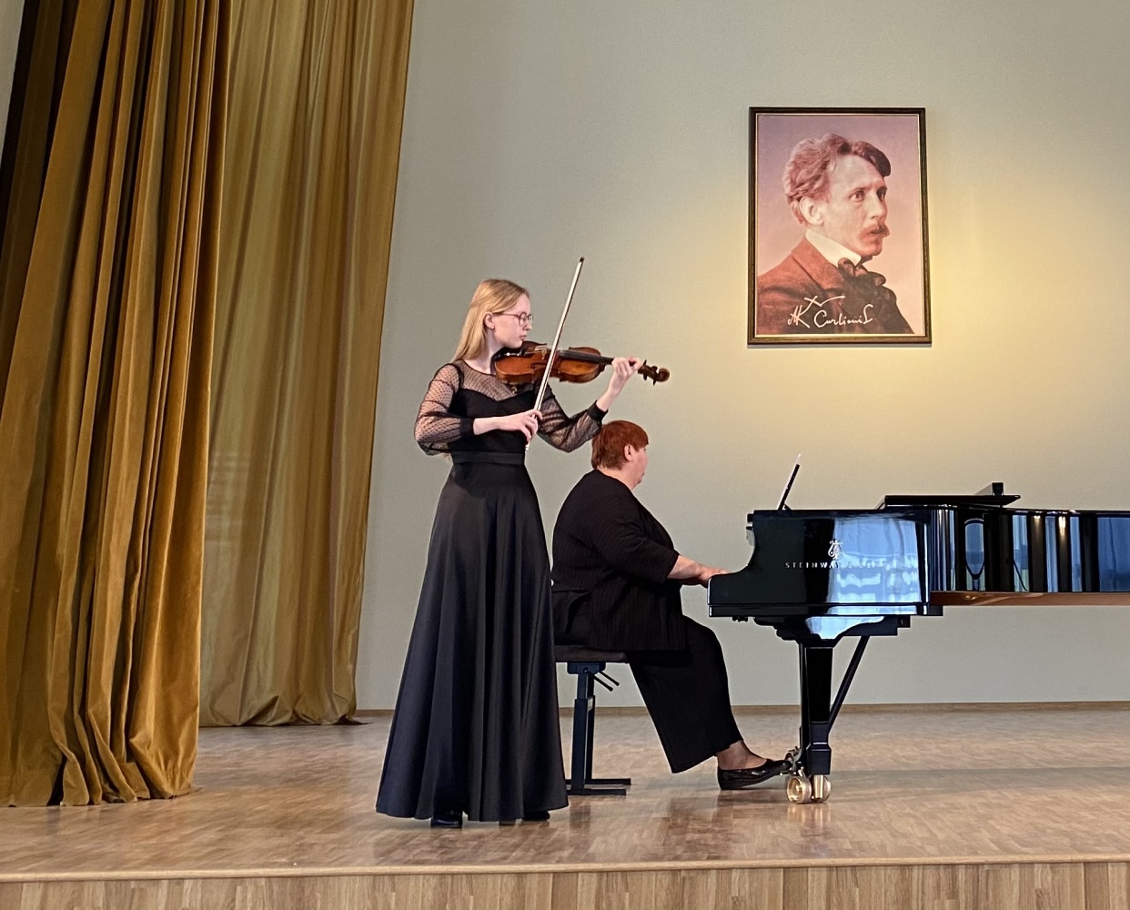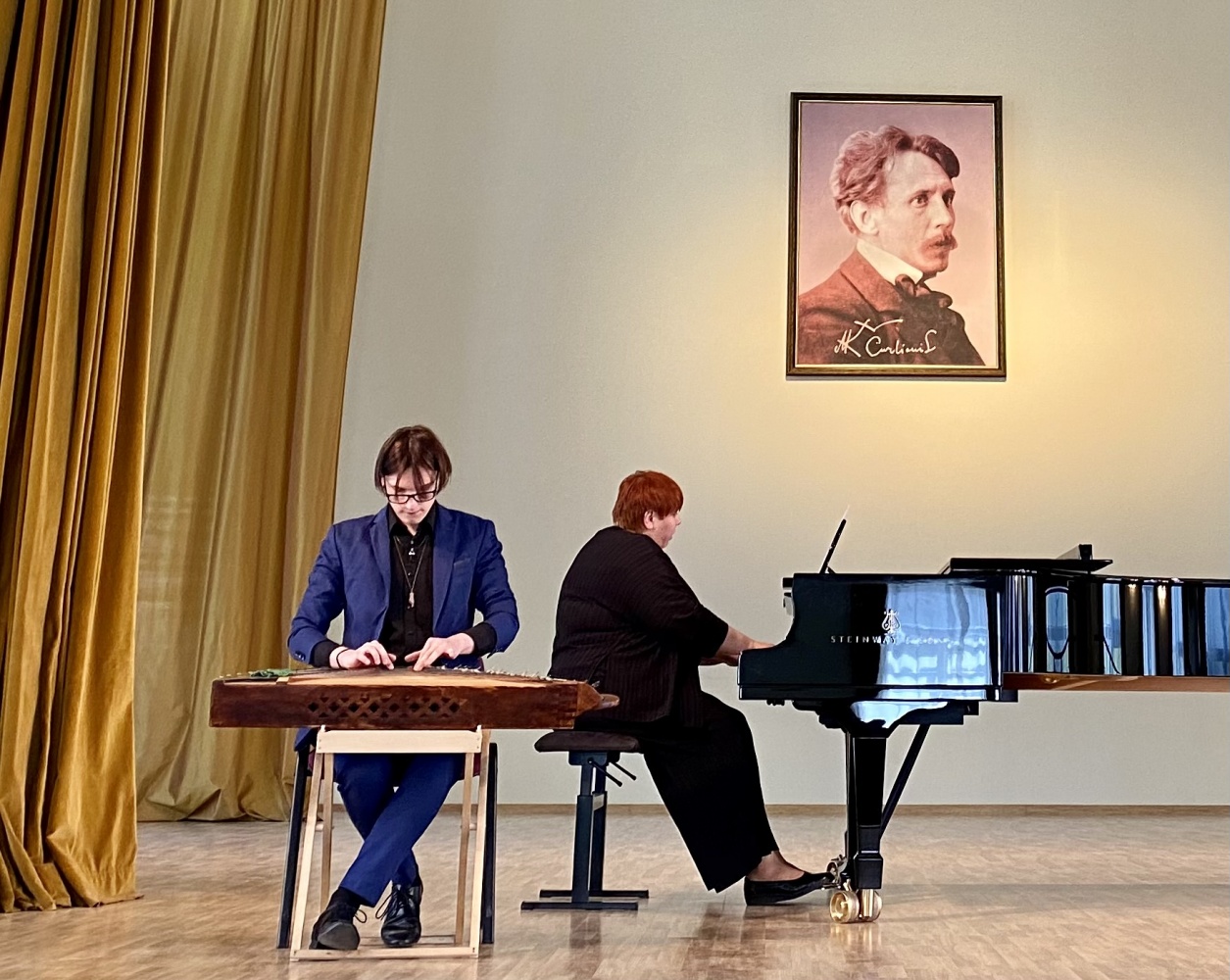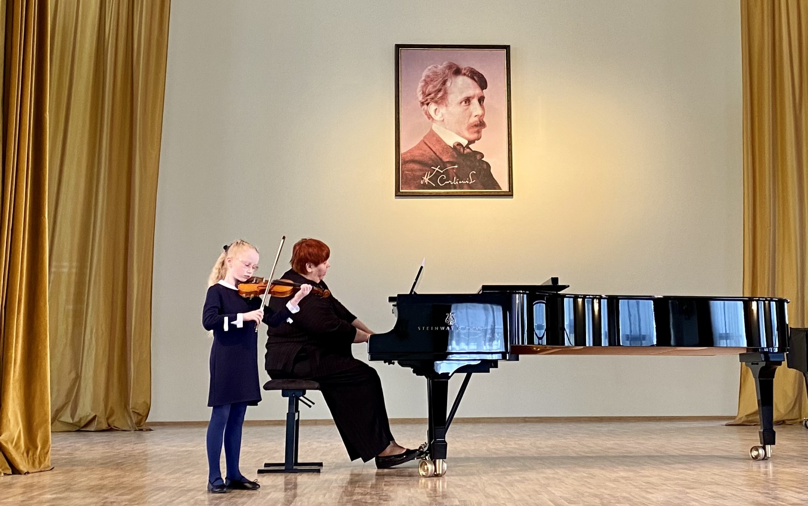 Šioje muzikinėje popietėje čiurlioniukai išgirdo įvairių kūrinių, atliekamų įvairiais instrumentais ir balsu. Koncertą pradėjo pirmą kartą viešėjusios šioje mokykloje ir pirmą kartą jos scenoje pasirodžiusios pirmokės smuikininkės solistės Agnė Marozaitė ir Bernadeta Januškaitė (mokytoja Nijolė Prascevičienė). Gražaus balso galimybes pademonstravo vokalistas Kristupas Laucius (mokytoja Beata Smiltinikienė), kuriam fortepijonu pritarė pianistė Martyna Vedeckytė, o lumzdelio muzikos spalvas ir jo trapų garsą atskleidė mokinė Ugnė Džiovelytė (mokytojas Alvaidas Bernotas). Visi trys atlikėjai mokosi IIa gimnazijos klasėje. Koncertą tęsė III gimnazijos klasės kanklininkas Modestas Ulberkis (mokytoja Regina Marozienė) ir pianistė Martyna Vedeckytė (mokytoja Marija Kaubrienė). Atlikę solo kūrinius koncertą užbaigdami į sceną kilo dviese ‒ III gimnazijos klasės smuikininkė Ugnė Krikščiūnaitė (mokytoja Nijolė Prascevičienė) kartu su IIa gimnazijos klasės akordeonistu Jonu Vozbutu (mokytoja Marytė Markevičienė). Instrumentalistams akompanavo koncertmeisterės Daiva Ramunė Šulcaitė ir Liudmila Filimonenko.