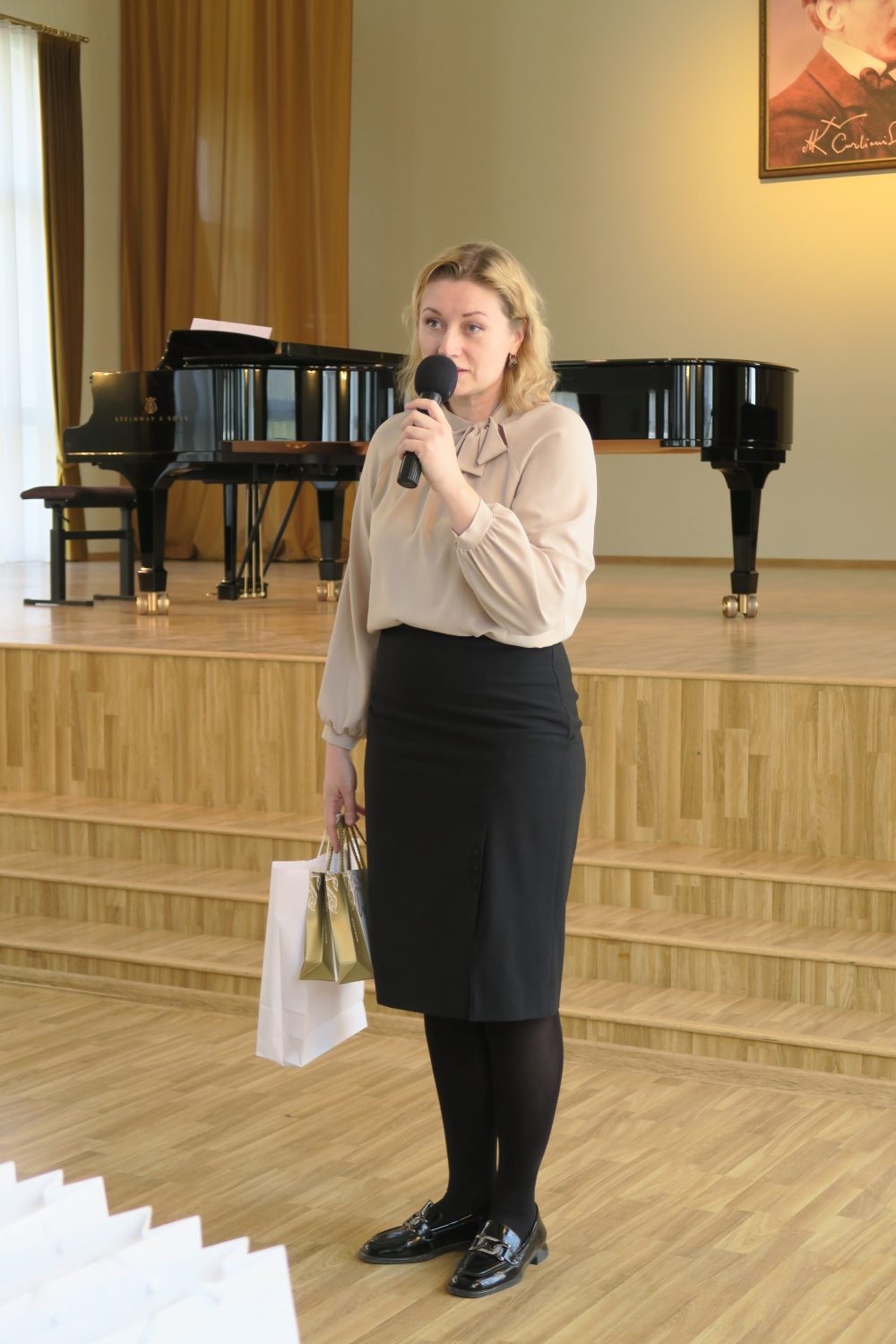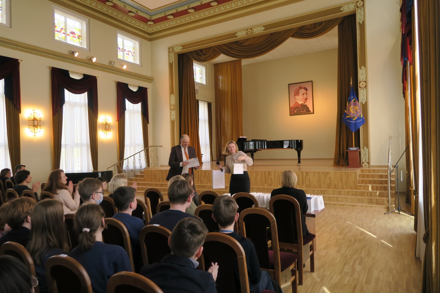 Atvykusius svetingai pasitiko mokyklos direktorius Dainius Numgaudis ir pavaduotoja muzikos ugdymui Eglė Čobotienė. Skaniai papietavę, mokiniai su mokytojomis repetavo ir su jauduliu laukė koncerto, kuriame susirinko pilna salė mokinių ir mokytojų.