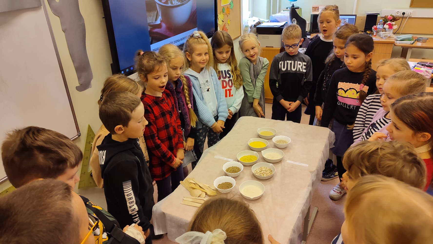Diena prasidėjo linksma „Ryto rato“ mankšta pagal dainą „Virė virė košę“. Mokiniai judesiais imitavo dainos žodžius. Klasės valandėlės metu pirmokai žiūrėjo filmuką „Galiūnų košė“, vieni kitiems pasakojo apie savo mėgstamiausias košes, mėgino atpažinti ir įvardinti įvairias kruopas. Smagiausia dienos dalis – skirtingų skonių košių ragavimas. Mokiniai sužinojo, kad košes galima išsivirti ne tik iš tradicinių grikių, ryžių, žirnių, perlinių kruopų, bet ir iš lęšių, linų sėmenų, sorų. Neapsieita ir be košės favoritės – populiariausia ir labiausiai vaikų mėgstama yra avižinių dribsnių košė.