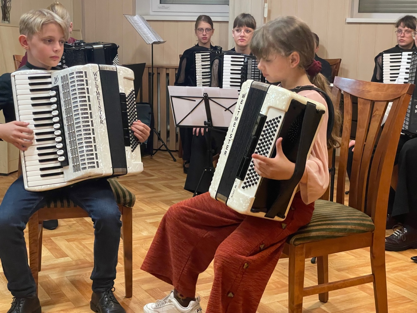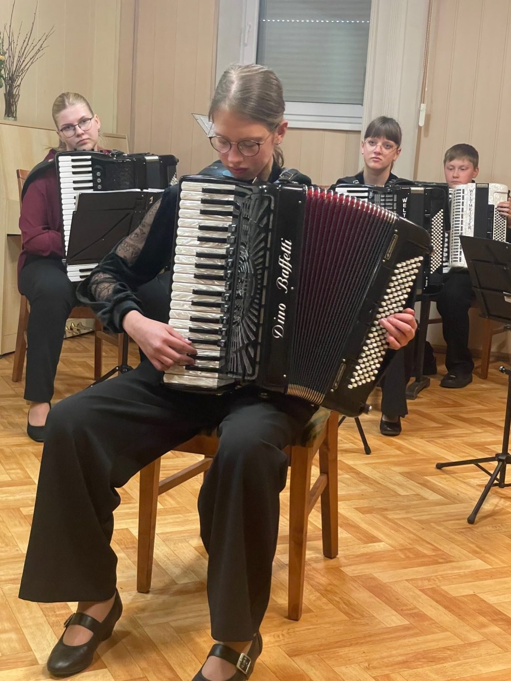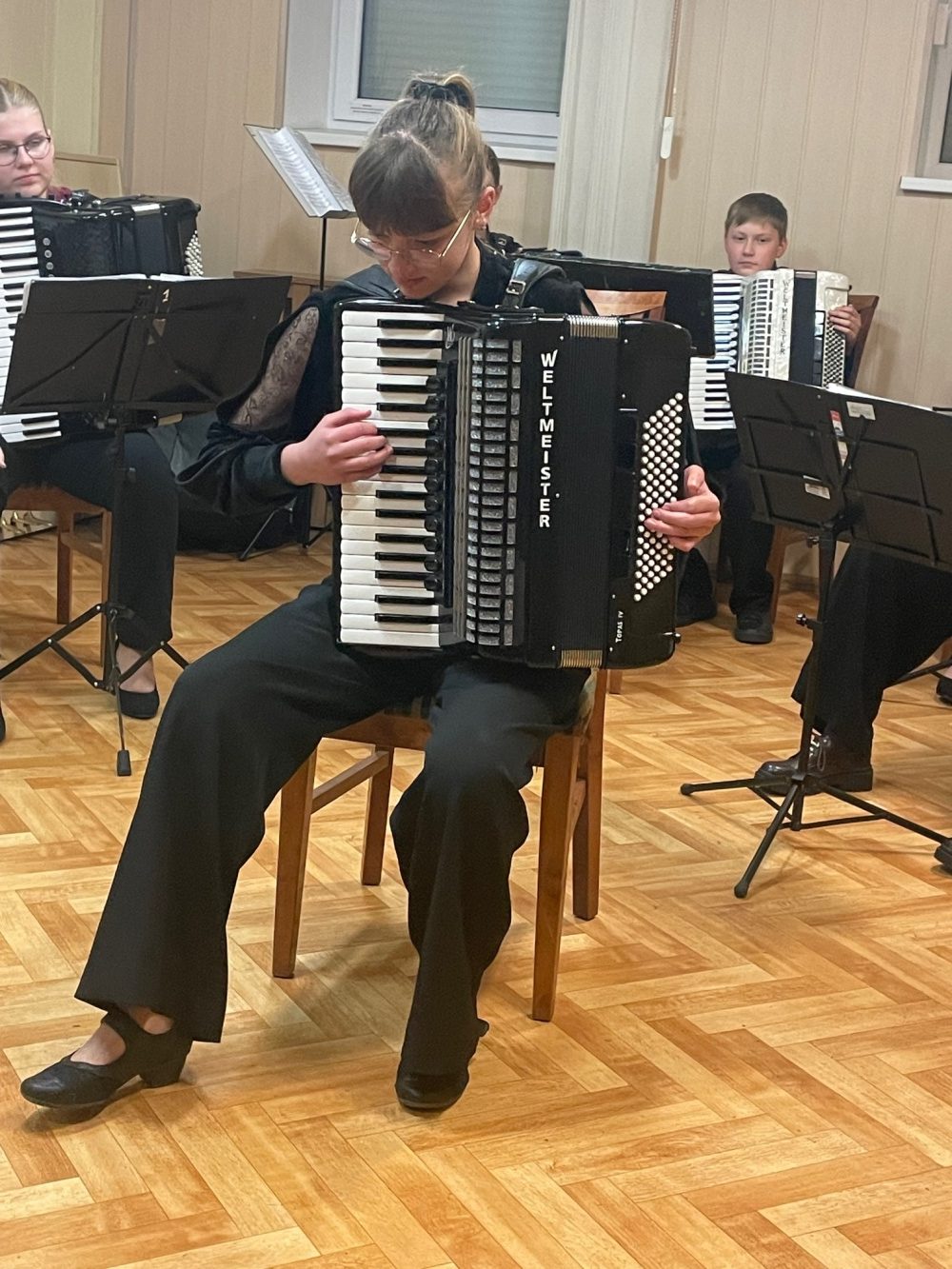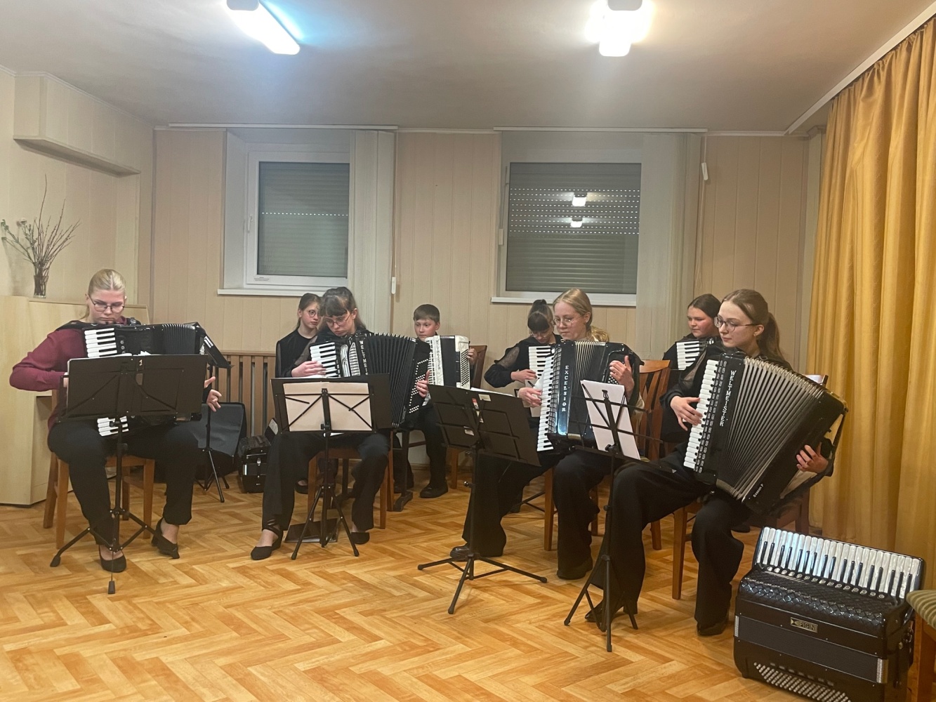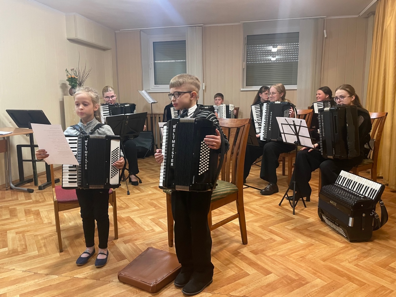 Šiais metais gegužės 6-oji akordeonistams – dviguba šventė. Pirmasis gegužės sekmadienis ‒ Motinos diena. Visi vaikai: ir dideli, ir maži, ir darželyje, ir mokykloje, ir namuose sveikina savo mamas, dovanoja joms gėles, sako gražiausius žodžius. Gimnazijoje mokiniai rengė koncertus ‒ muzikines puokštes savo mamoms. Ruošėme koncertą mamoms ir mes. Jame dalyvavo 1‒8 klasių mokiniai ir norintys vyresnieji. Pasirinkome žemesnes klases, kadangi šių klasių mokiniai rečiau yra matomi ir girdimi scenoje, norėjosi, kad mamos turėtų galimybę išgirsti savo atžalas ir galėtų pasidžiaugti jų pasiektais rezultatais. Mūsų pasirinkimas pasiteisino. Malonu buvo klausytis pačių mažiausių mūsų pirmokėlių. Mamos dėkojo ir sakė, kad tai buvo puiki galimybė išgirsti, ką jų vaikai jau yra padarę. Koncerte jie grojo po vieną, ansambliuose ir visi kartu orkestre.