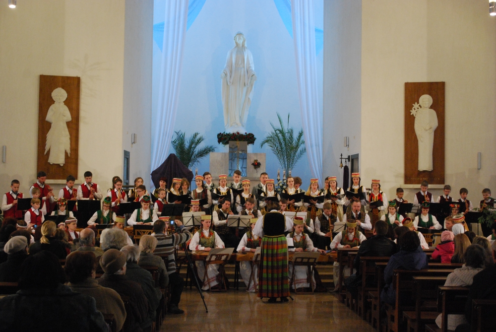 Koncerte „Užteka, teka šviesi saulelė…“, įvykusiame Šiaulių šv. Mergelės Marijos Nekaltojo prasidėjimo bažnyčioje, skambėjo liaudies instrumentų orkestrų atliekama muzika, kurią atliko Šiaulių Sauliaus Sondeckio menų gimnazijos liaudies muzikos ansamblis „Jovarėlis“ (vad. R. Vaišnorienė ir R. Ragauskaitė), Šiaulių Dainų muzikos mokyklos liaudies instrumentų orkestras (vad. L. Andriuškienė ir D. Daknys), Kelmės meno mokyklos liaudies instrumentų orkestras (vad. D. Miliauskienė) ir viešnia iš Estijos Laura Lindpere (kanelė).